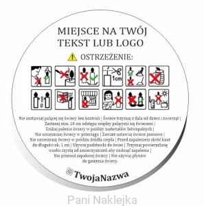 Naklejki ostrzegawcze piktogramy na świece - personalizowane, z Twoją nazwą, napisem lub logo.