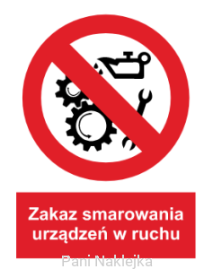 UNIWERSALNA NAKLEJKA BHP ZAKAZ SMAROWANIA URZĄDZEŃ W RUCHU GC018