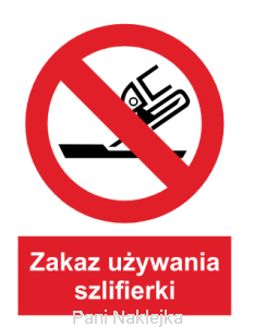 Naklejka BHP Zakaz używania szlifierki GA032