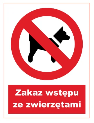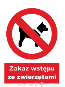 UNIWERSALNA NAKLEJKA BHP ZAKAZ WSTĘPU ZE ZWIERZĘTAMI GC007