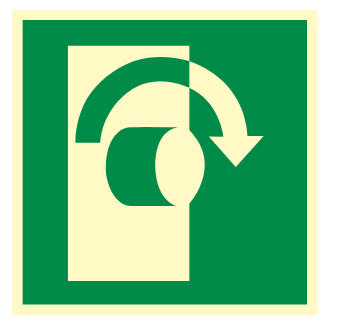 Naklejka BHP przekręć w prawo aby otworzyć AE019