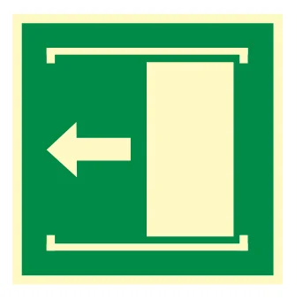 Naklejka BHP przesunąć z lewej aby otworzyć AE034