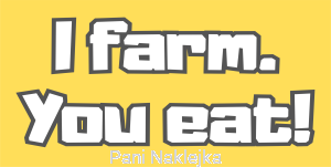 Naklejka napis I FARM YOU EAT! na żółtym tle