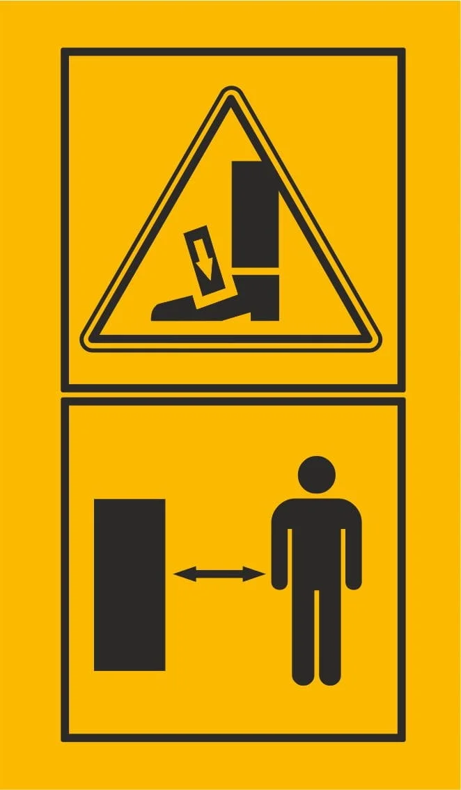 Naklejka ostrzegawcza uwaga możliwe przygniecenie kończyn zachowaj odstęp