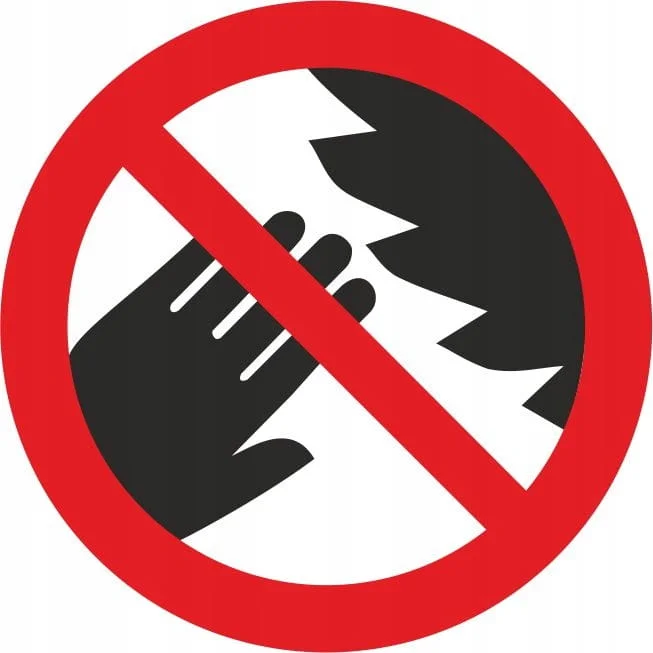Niebezpieczeństwo przecięcia ucięcia ręki przez piłę. Uwaga ostre krawędzie.