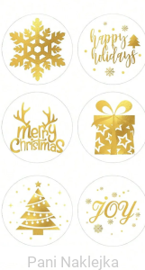 Złote świąteczne naklejki 100 szt bezbarwna folia 22 mm na prezenty kartki